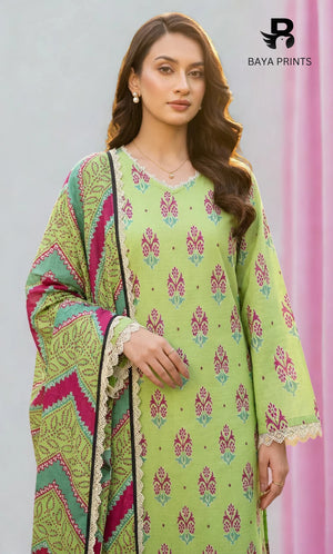 3 Piece Unstitched Printed Doria Linen Suit - BA-V3-005