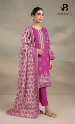 3 Piece Unstitched Printed Dobby Lawn Suit -BA-V19-05